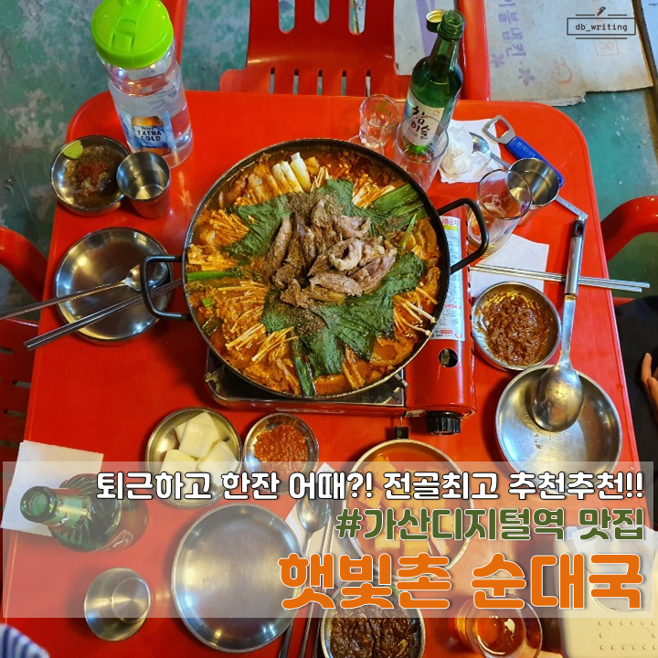 오늘 포스팅 할 곳은 가산디지털역에 위치한 햇빛촌 순대국 입니다. 전부터 친구가 계속 전골이 맛있는 집이 있다며 계속 추천을 했었어요 맛에 민감한 친구여서 그 친구가 맛있다고 하면 진짜 맛있겠구나 하는 생각이 들었죠 그래서 방문하게 되었답니다. 주소는 서울 금천구 벚꽃로38길 32-39에요 가산디지털역 1번출구로 나오신다음 길 건너서 약 3-5분 걸어가면 나와요 3번째 골목에서 안쪽으로 들어가셔야 찾을 수 있어요. 저는 평일 저녁에 방문했어요 가산디지털 주변이 사무실이 많자나요 그래서그런지 퇴근하고 바로 집가기 아쉬운 직장인들을 위한 술집이 많아요 그런 술집이 많으니 무리없이 바로 들어갈 수 있다고 생각했는데 그건 오산이었어요. 평일 저녁인데도 줄서서 먹었어요. 약 7시쯤 방문을 했거든요. 퇴근하고 오시..